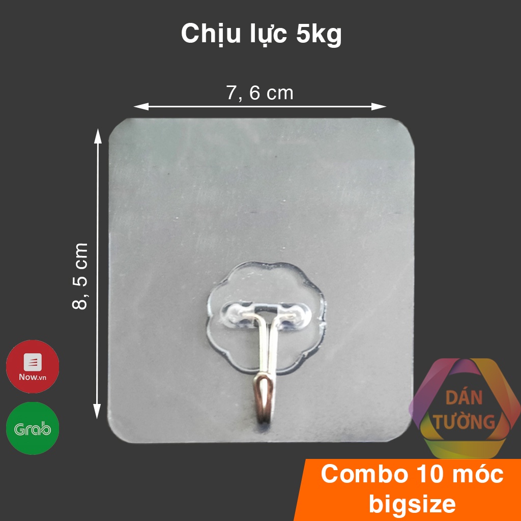 Móc dán tường chịu lực bigsize, bộ 10 móc dán tường siêu dính size to chịu lực 5kg dán trên gạch men, kính _MB