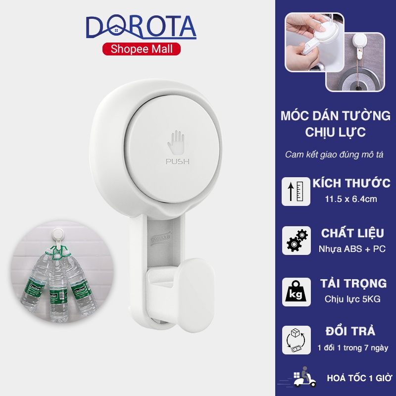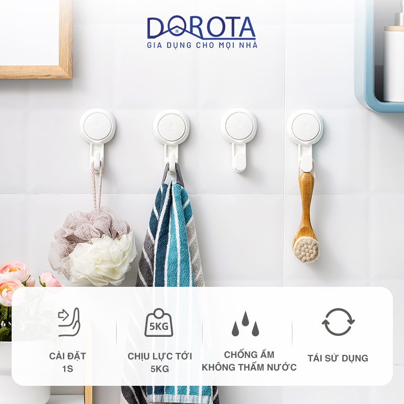 Nhà cửa & Đời sống > Sắp xếp nhà cửa > Móc treo || Móc dán tường chịu lực cao cấp DOROTA tái sử dụng nhiều lần tải treo 5kg miếng dính hút chân không chống nước AW553Còn hàng