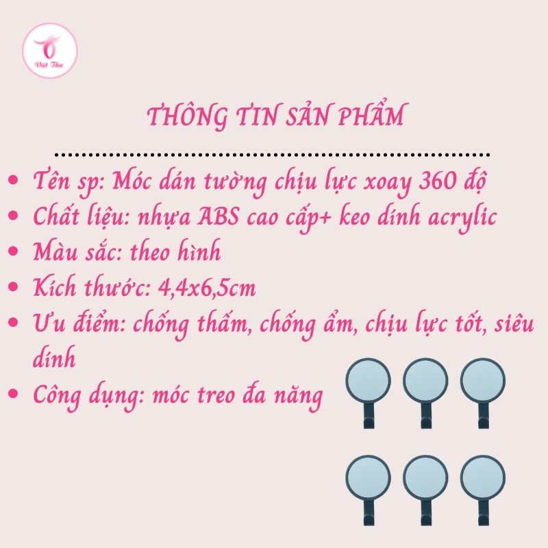Móc dán tường chịu lực siêu dính xoay 360 độ treo đồ đa năng chống thấm nước Việt Thư1. Mô tả sản phẩm Móc dán tường chịu lực siêu dính xoay 360 độ