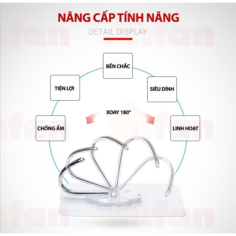 Móc dán tường chịu lực siêu bền ( Lưu ý : Sản phẩm không sử dụng tốt khi dán lên tường sơn, phù hợp với tường gạch tường ốp đá...)