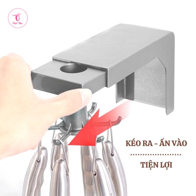 - Móc dán tường thiết kế giản tiện, có móc treo 6 nhánh xoay 360 độ, tự do điều chỉnh, thuận tiện cho việc treo đồ nhà bếp, nhà tắm…