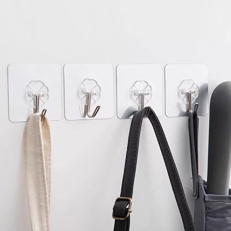 Combo 10 Móc Dán Tường Chịu Lực Siêu Chắc Siêu Bền Trong Suốt Treo Tường Đa Năng 6*6 cm - Móc Dính Tường Treo Đồ