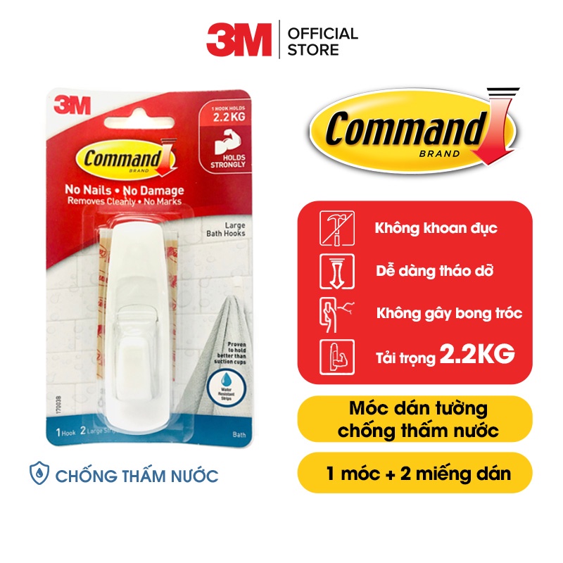 Móc dán tường chống thấm nước Command 3M cỡ lớn chịu lực 2.2kg 17003B