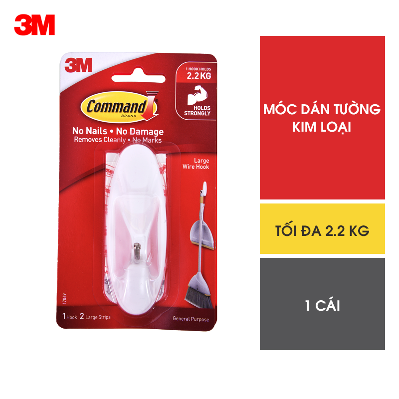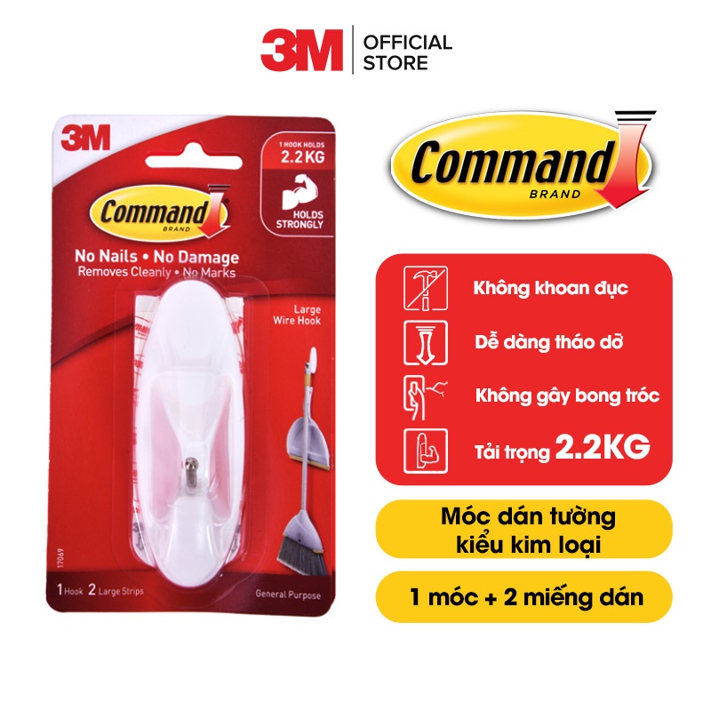 Nhà cửa & Đời sống > Sắp xếp nhà cửa > Móc treo || Móc dán tường đầu kim loại Command 3M vỉ 1 cái cỡ lớn chịu lực 2.2kg 17069Còn hàng