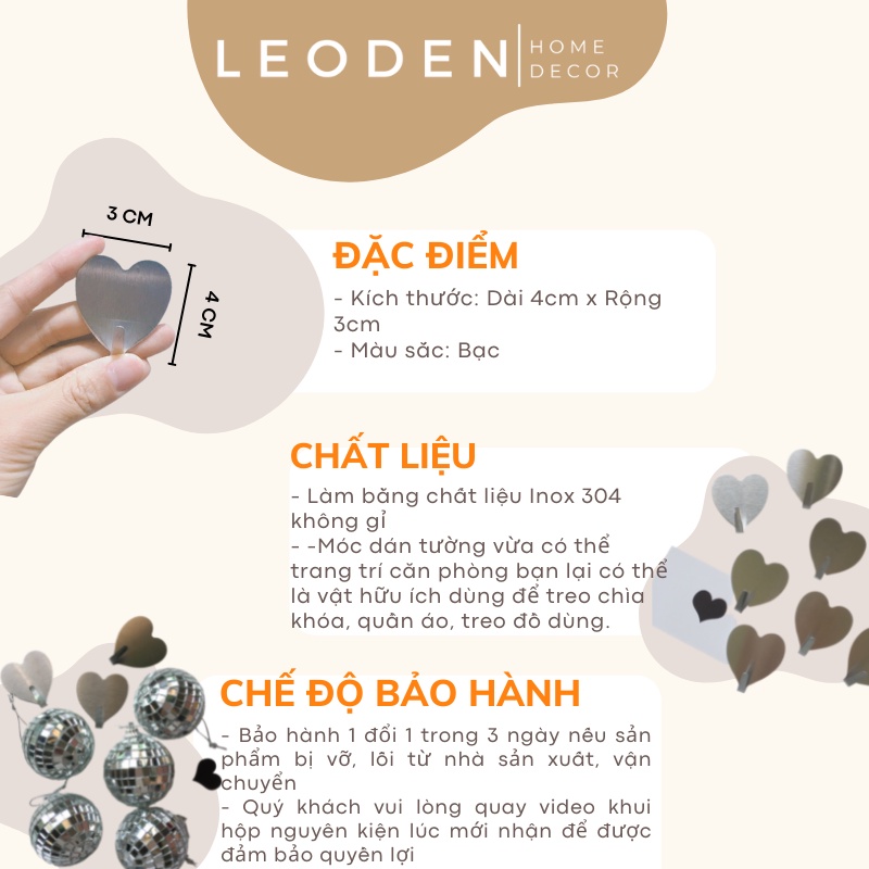 Móc dán tường dễ thương hình trái tim màu bạc, móc dán tường chịu lực inox không gỉ - LEODEN Decor✅ CAM KẾT SẢN PHẨM: