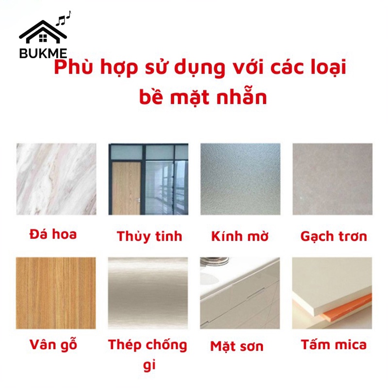 - Keo dính cao cấp có thể dán được trên các bề mặt nhẵn min như tường, kính, nhưa, thủy tinh.. và có khả năng chịu lực lên đến hơn 10kg