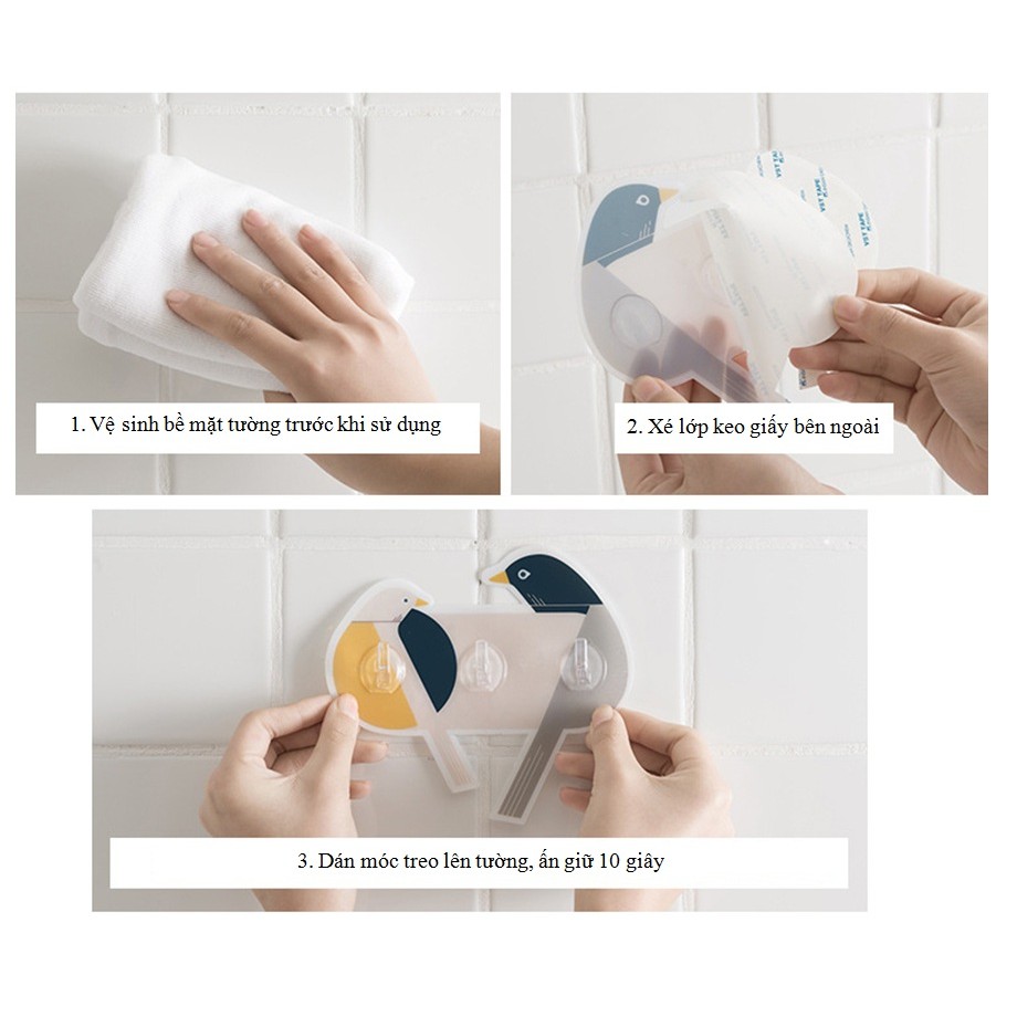 Móc dán tường decor siêu dính làm móc treo hình com chim trang trí căn phòng hiện đại