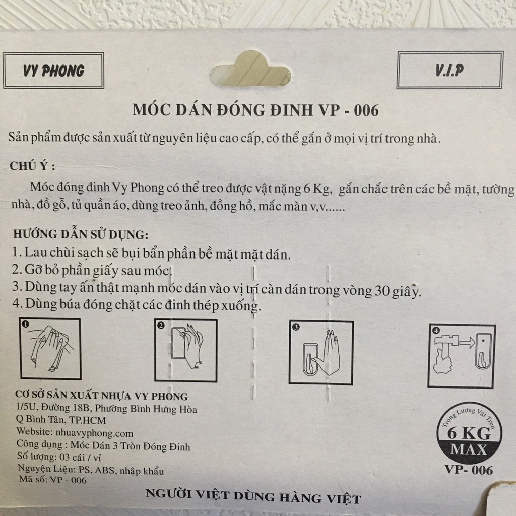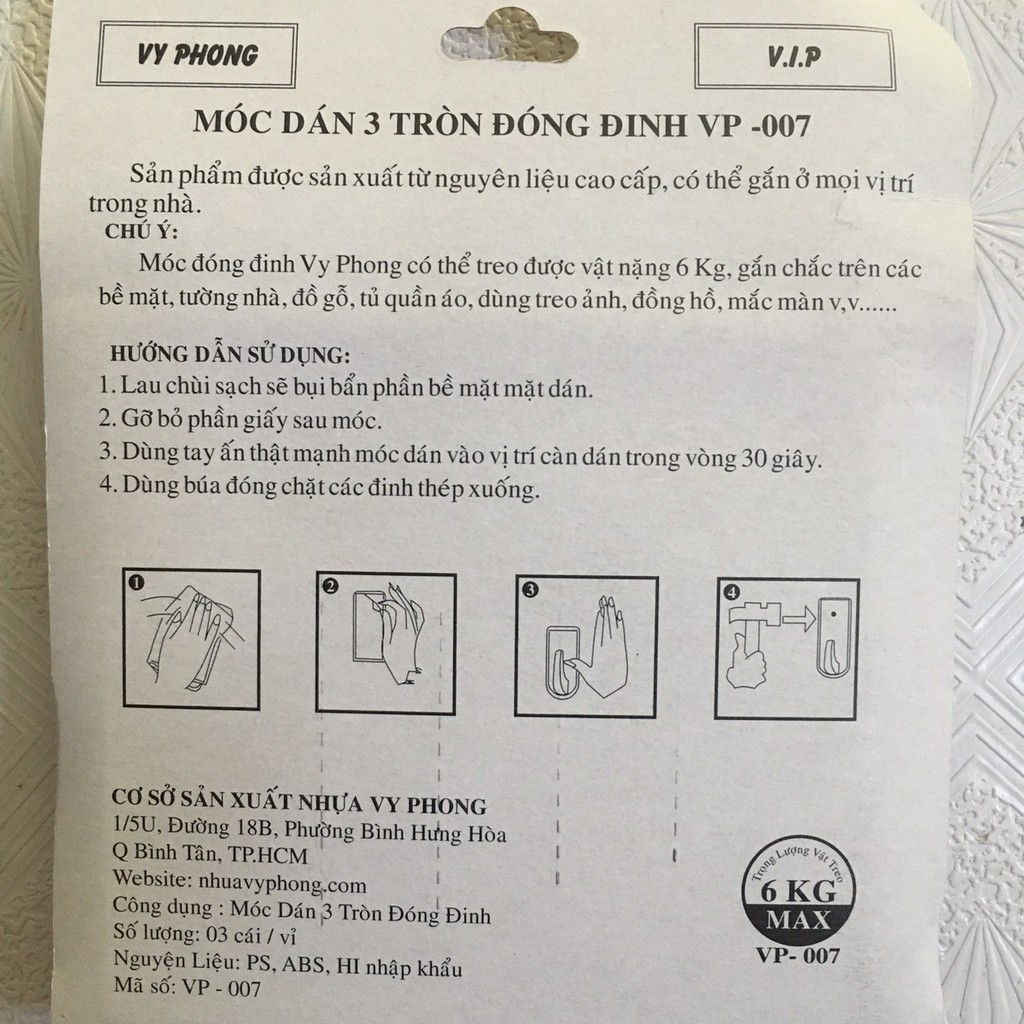 MÓC DÁN TƯỜNG ĐÓNG ĐINH 01 VỈ 3 CÁI - 000242