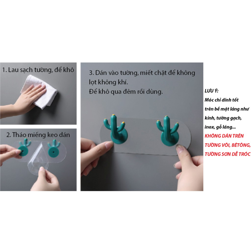 Móc dán tường hình xương rồng chịu lực, không khoan tường - J190