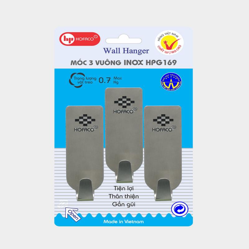 Móc dán tường 3 vuông inox Hofaco G169Trọng lượng vật treo: 1.2kg