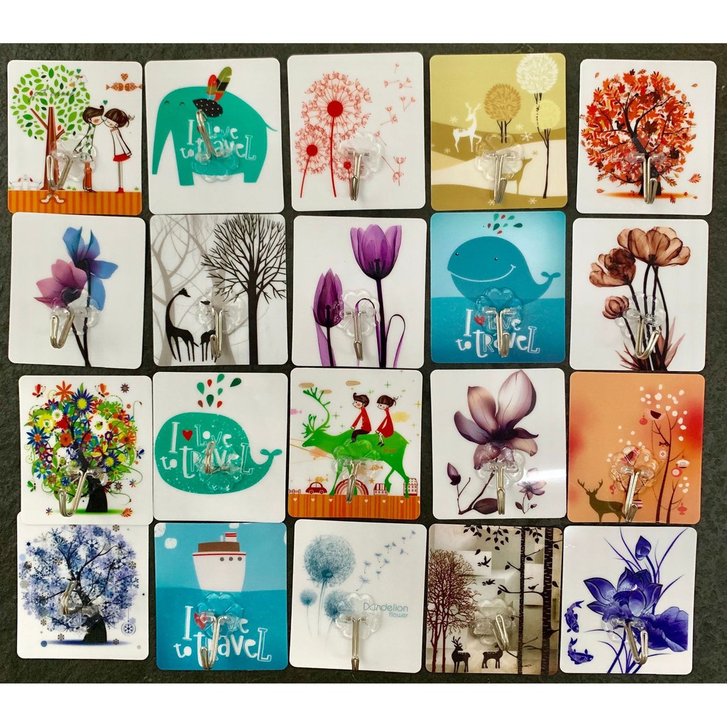 Móc dán tường in hình tranh 3d dễ thương chịu lực siêu chắc siêu bền dính treo đồ nhà tắm, quần áo, tranh ảnh