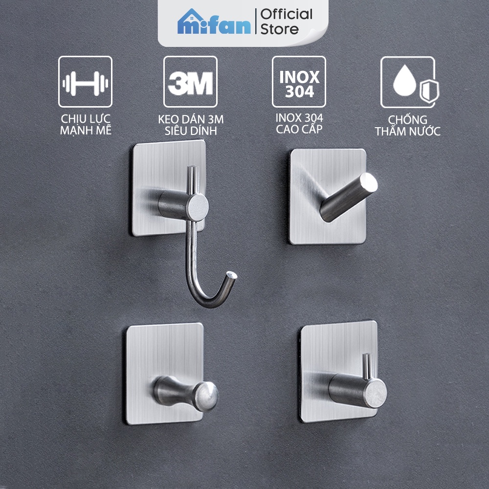 Móc Dán Tường Inox 304 Cao Cấp MIFAN - Keo 3M Siêu Dính - Treo Quần Áo, Khăn, Dụng Cụ Bếp, Đồ Nhà Tắm