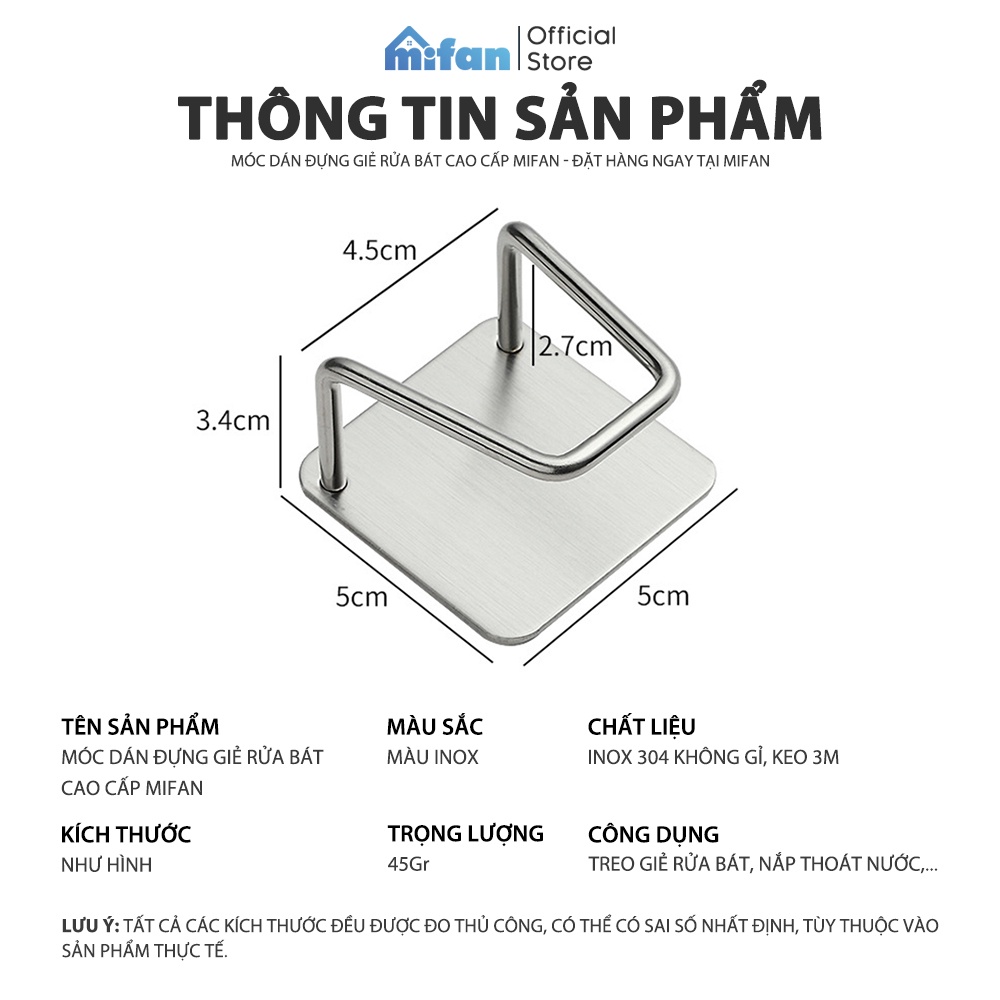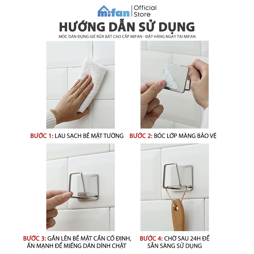 Nhà cửa & Đời sống > Dụng cụ chăm sóc nhà cửa > Miếng bọt biển, miếng chà vệ sinh || Móc Dán Tường Inox 304, Keo 3M Cao Cấp MIFAN - Treo Miếng Rửa Bát, Thớt, Vung Xoong Nồi, Dụng Cụ Bếp, Đồ Nhà TắmCòn hàng
