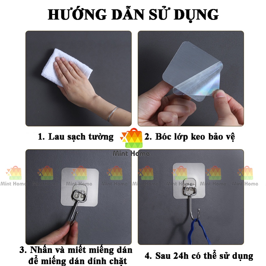 Móc dán tường inox 304 không gỉ siêu dính chịu lực 20 kg loại cực tốt, miếng treo dùng thay thế móc giá kệ bếp, nhà tắmCHẤT LIỆU INOX 304