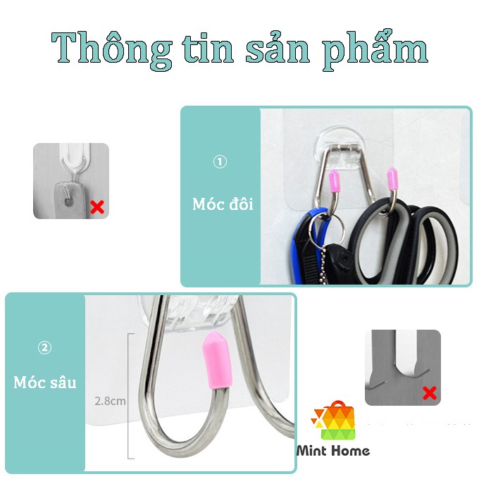 Móc dán tường inox 304 thép không gỉ loại cực tốt treo đồ chịu lực 10kg siêu cứng chắc bền dạng móc đôiSản phẩm tiện lợi treo các vật dụng trong gia đình như: trang sức, dao, kéo, mũ, nón, khăn tắm, bông tắm, chun buộc tóc,... giữ không gian nhà luôn gọn gàng, ngăn nắp.