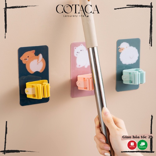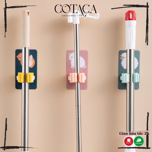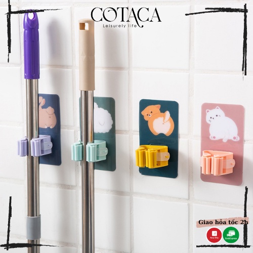 Móc dán tường kẹp giữ cây lau nhà, móc treo chổi, treo ô, treo đồ dùng cá nhân