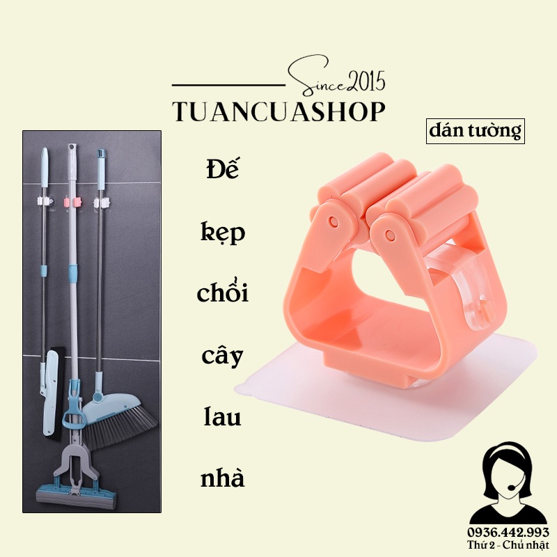 Móc dán tường kẹp giữ cây lau nhà, móc treo chổi chịu lực 6kg (C5)