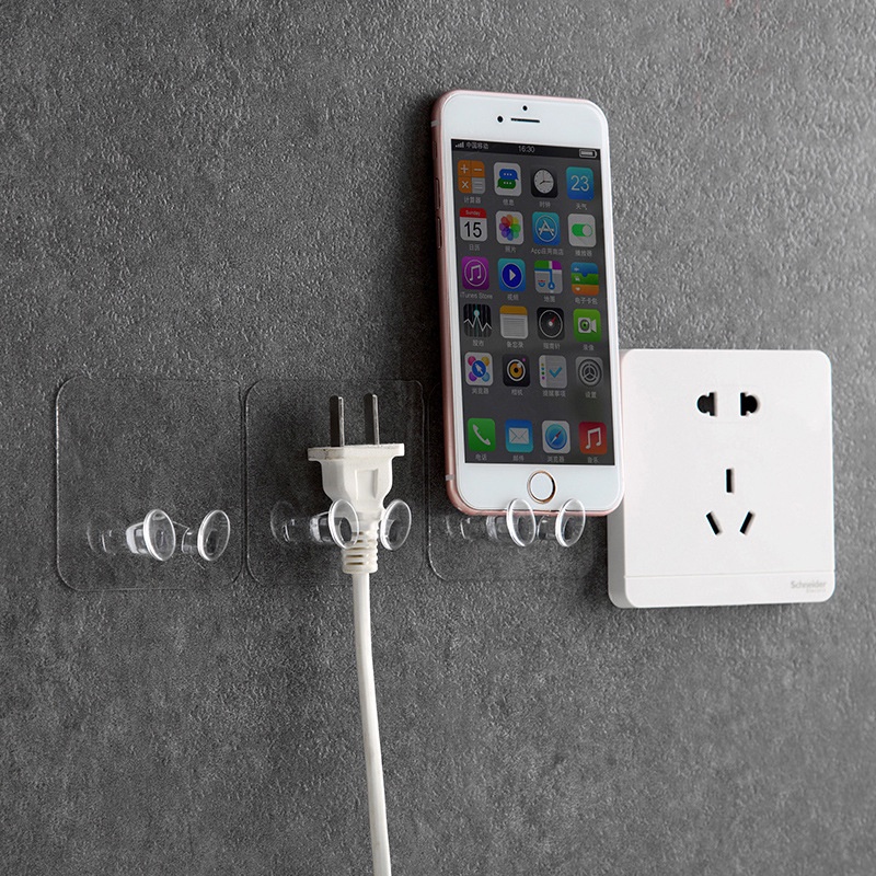 Móc Dán Tường Kẹp Giữ Dây Điện, Phích Cắm Điện/ Kê Đỡ Sạc Điện Thoại - Trong suốt