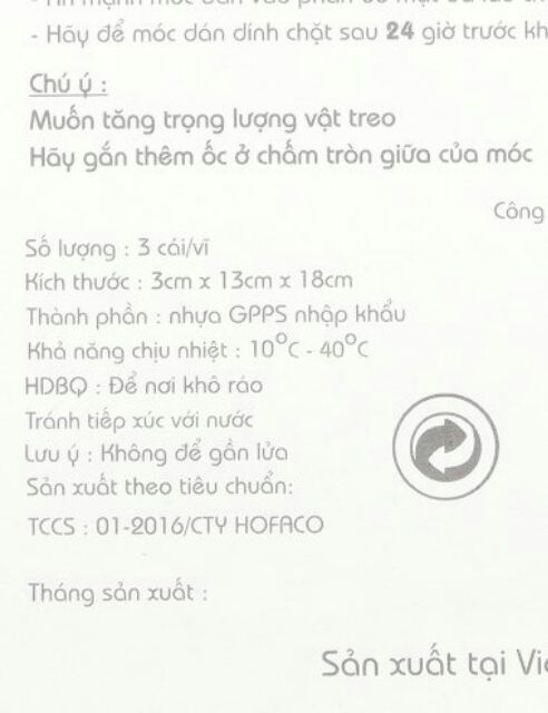 Chú ý: Muốn tăng trọng lượng vật treo hãy gắn thêm ốc ở chấm tròn giữa của móc