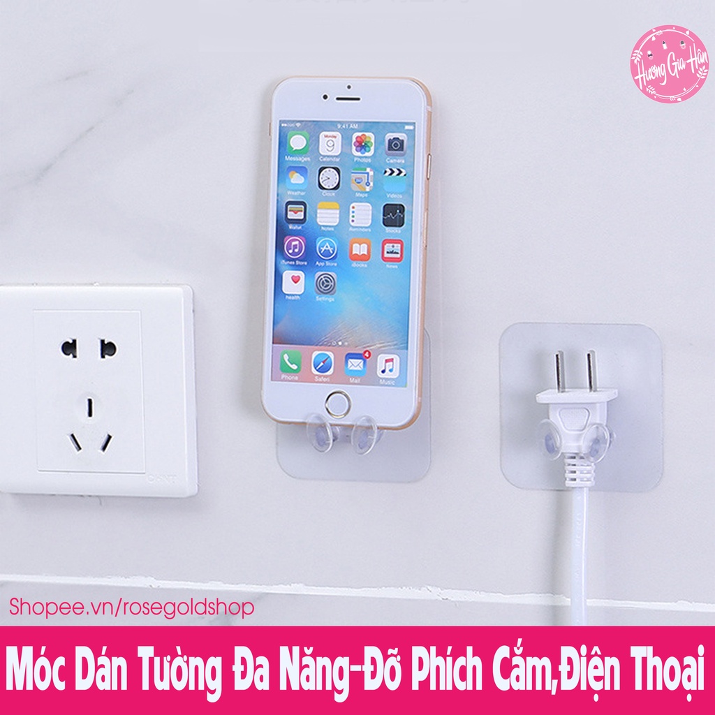 Chào mừng bạn đến với Hương Gia Hân shop (Rosegoldshop)Móc Dán Tường Đa Năng - Treo đồ - Đỡ Phích Cắm - Đỡ Điện Thoại Khi Sạc Siêu Dính Chịu Lực 6kg