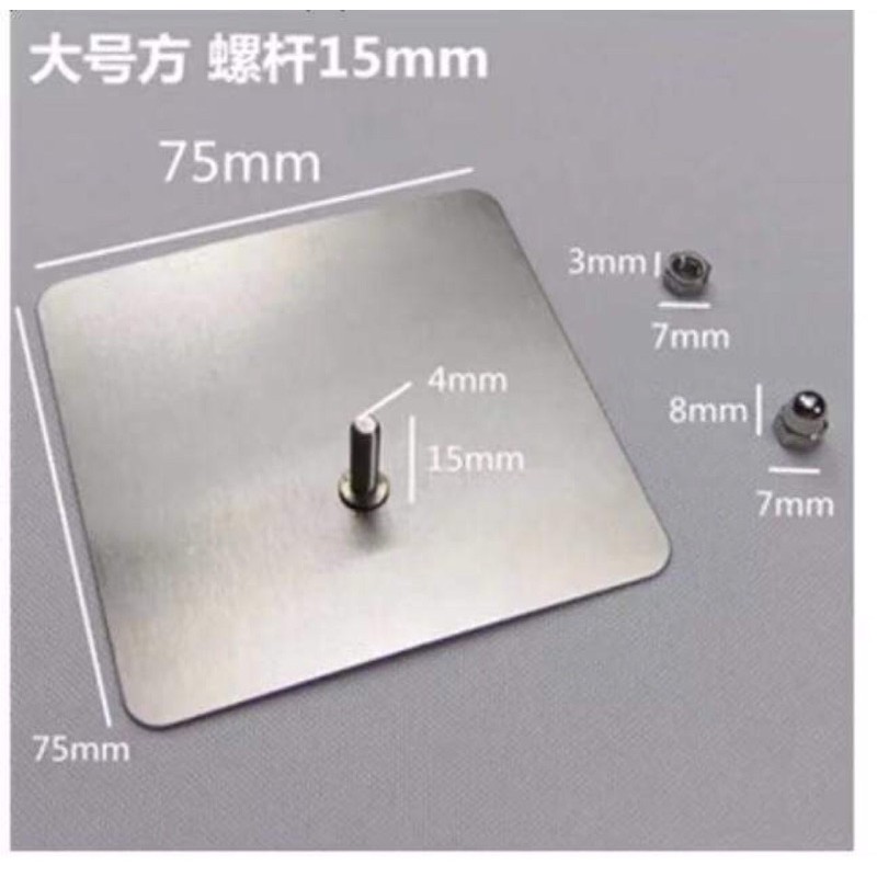 Miếng dán bằng inox treo được vật nặng 5kg trở xuống, bản to vuông bằng lòng bàn tay