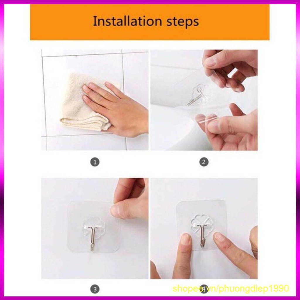 Móc dán tường chịu lực, trong suốt, 360 độ, sử dụng được cho mọi môi trường, nhà tắm, bếp. Móc xoay 180 độ nên mang thể dán ngược dán xuôi đều được. Móc chịu lực 10kg, treo thoải mái ạ.