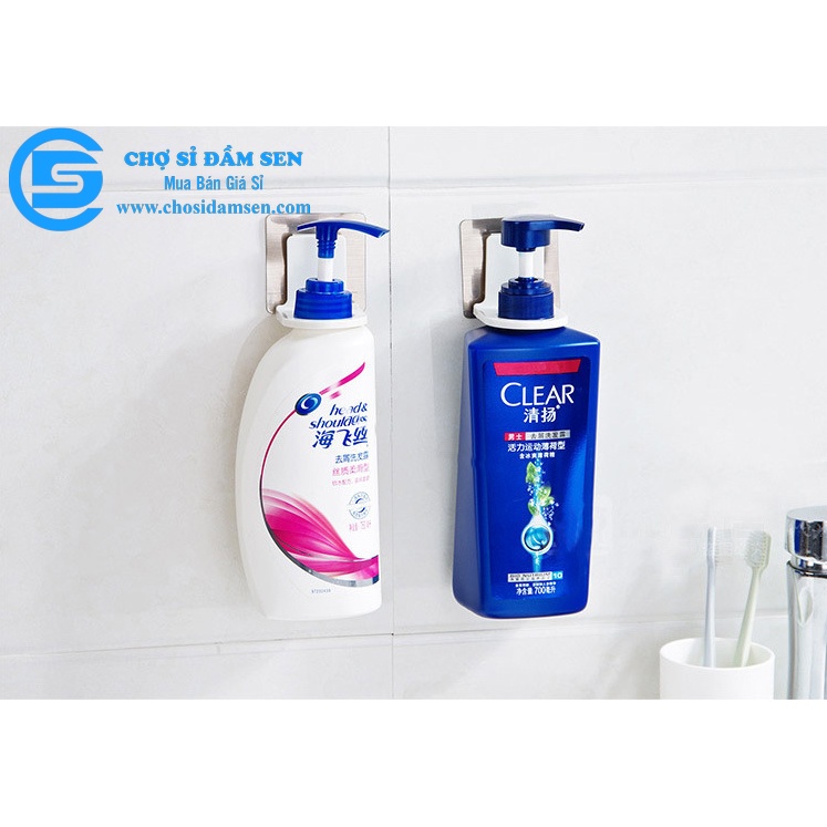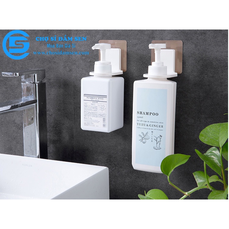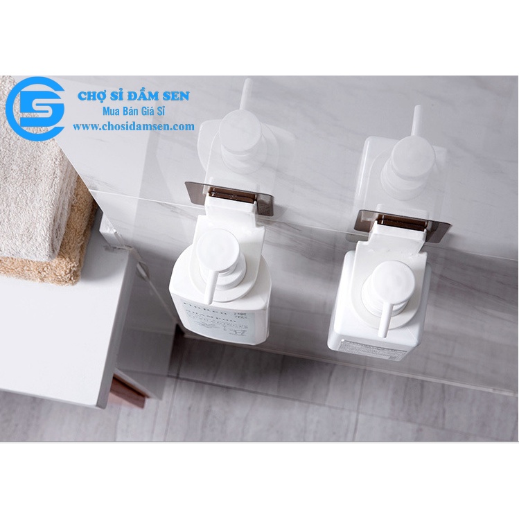 MÓC DÁN TƯỜNG TREO BÌNH NƯỚC RỬA TAY, DẦU GỘI, SỮA TẮM CÓ VÒI XỊT SIÊU CHẮC