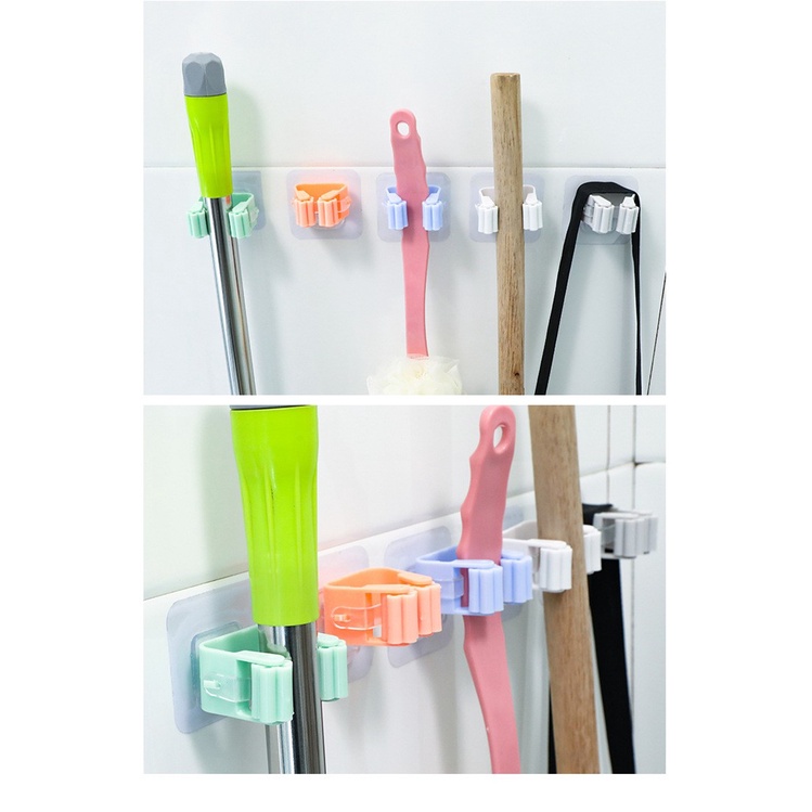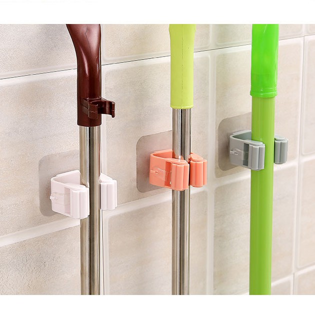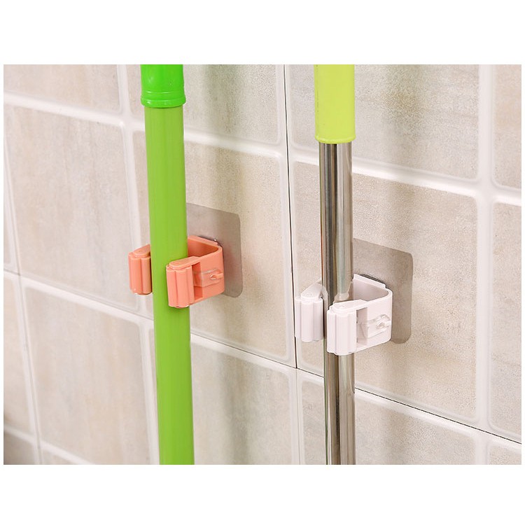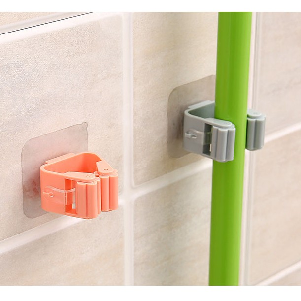 - Tiện ích: . Móc kẹp treo cây lau nhà giúp bạn giữ cây lau nhà luôn khô ráo, không làm hư hại mặt gạch. . Không cần phải khoan tường gắn đinh, dán móc bằng keo 2 mặt, khả năng chịu lực tốt đến 5 kg. Ngoài ra, bạn có thể dùng treo các vật dụng khác (chổi, cây lau kính,…) . Mặt keo dính tốt trên mặt nhẵn như gạch men, đá cẩm thạch, thủy tinh…