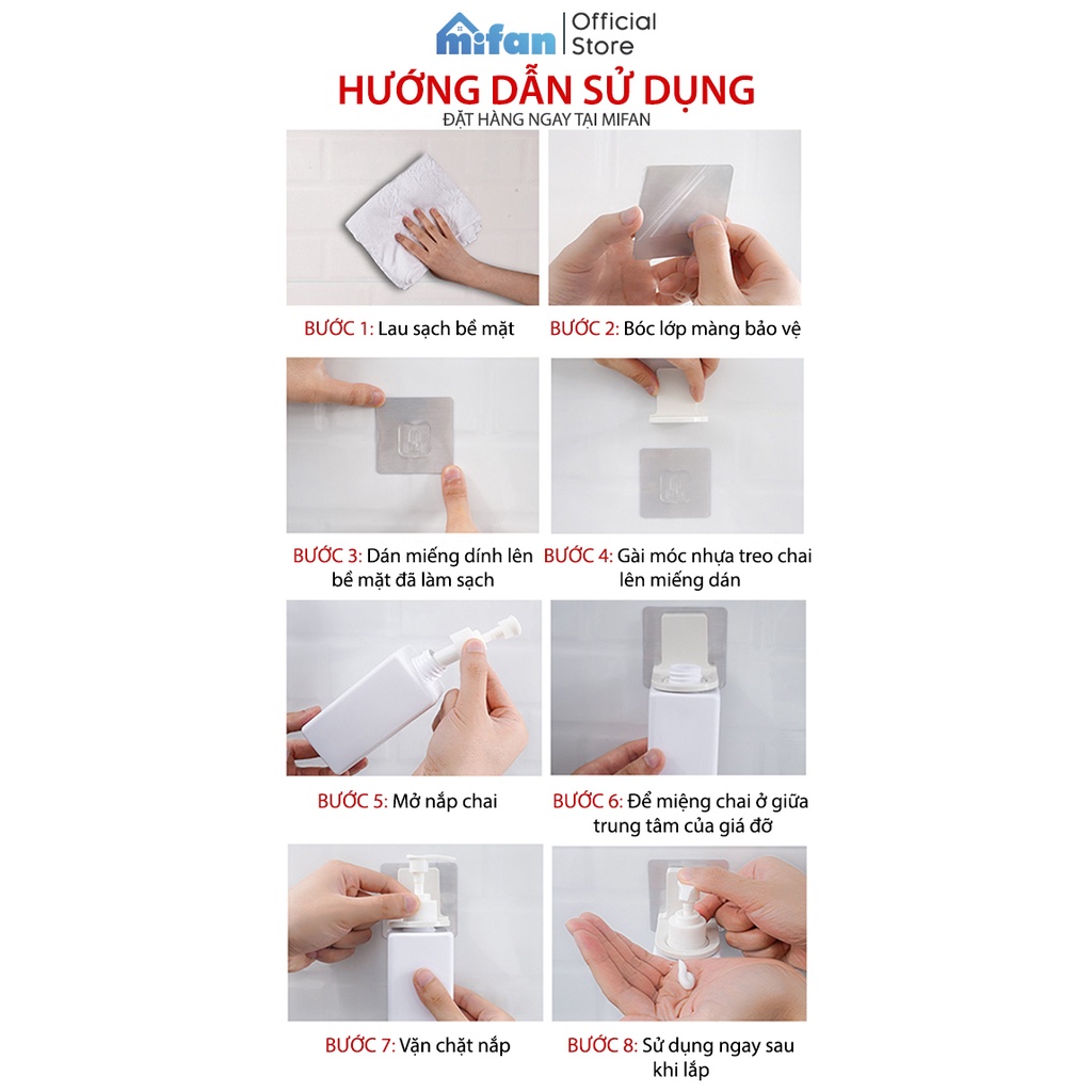 Nhà cửa & Đời sống > Sắp xếp nhà cửa > Móc treo || Móc Dán Tường Treo Chai Dầu Gội Đầu, Sữa Tắm, Nước Rửa Tay - Nhựa ABS cao cấp, Miếng Dán Siêu Dính Chịu Lực - MIFAN