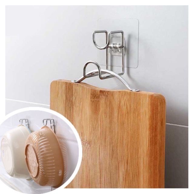 MÓC DÁN TREO THAU, CHẬU, THỚT, ĐỒ DÙNG NHÀ BẾP, PHÒNG TẮM - THÉP KHÔNG GỈ SIÊU BỀN, SIÊU CHẮC🏆 TIẾT KIỆM 96% DIỆN TÍCH