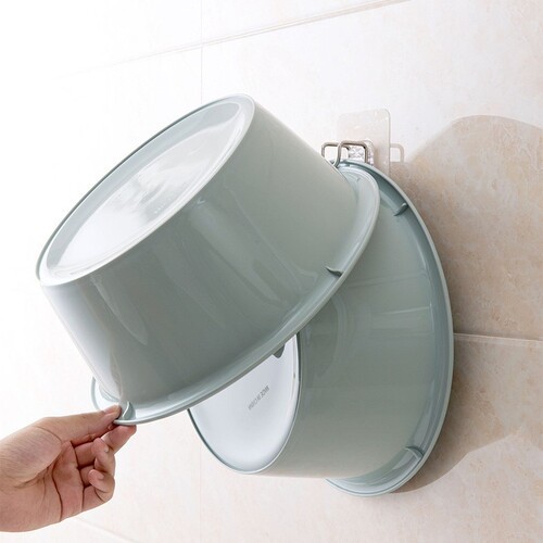 _ Có móc giữ hình chữ L để gài nhiều thau chậu cùng lúc, treo lên tường gọn gàng, các chậu có thể cùng cỡ hoặc khác cỡ, miễn là lồng vào nhau được, tạo nhiều không gian thoáng dưới mặt sàn nhà tắm , chịu tải 5-7kg.