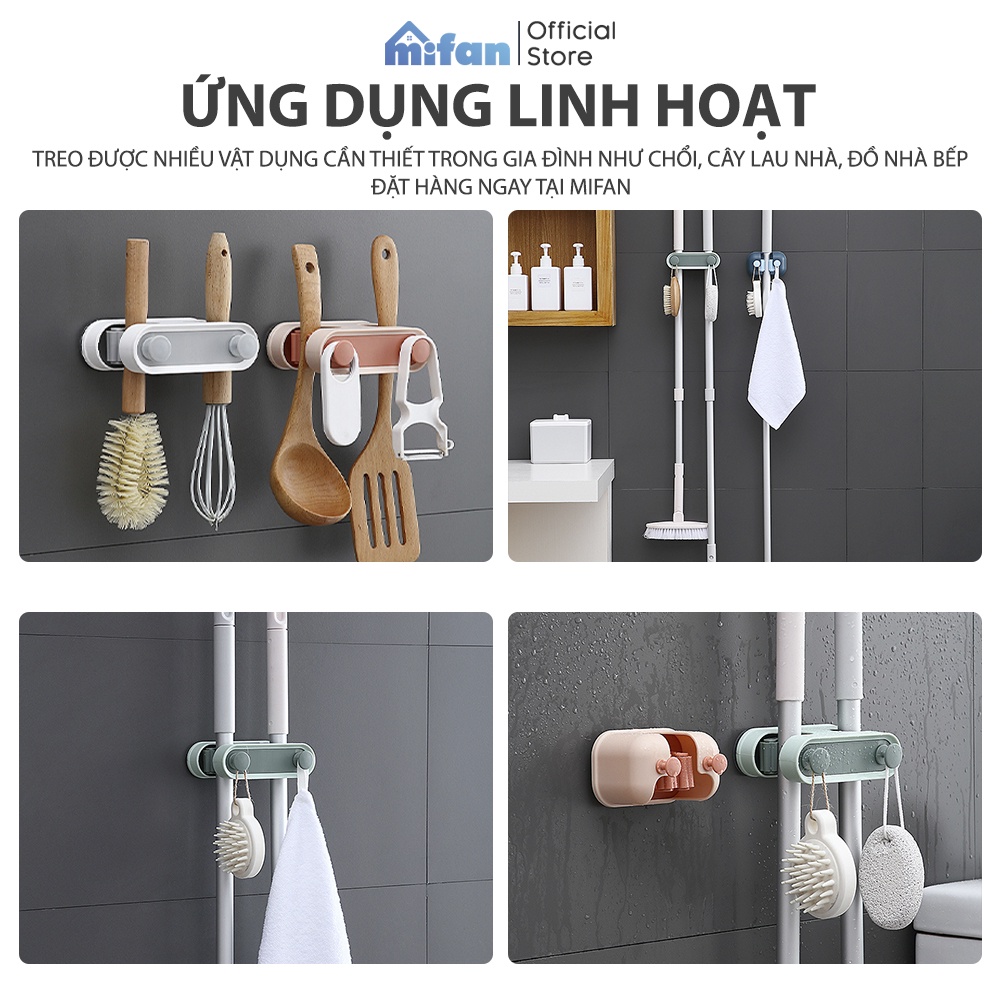 MÓC DÁN TƯỜNG KẸP GIỮ CÂY LAU NHÀ, TREO CHỔI, DỤNG CỤ NHÀ BẾP, PHÒNG TẮM CAO CẤP MIFAN - CHỊU LỰC 7KG - NHỰA ABS SIÊU BỀN - 2 MÀU