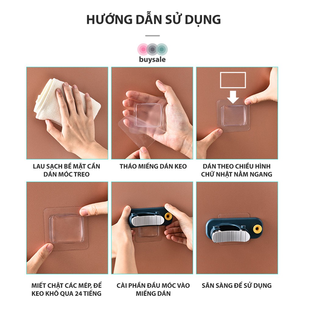 ✔ Móc dán tường tích hợp thêm đầu móc tròn để treo khăn hoặc các loại bàn chải, giẻ lau...