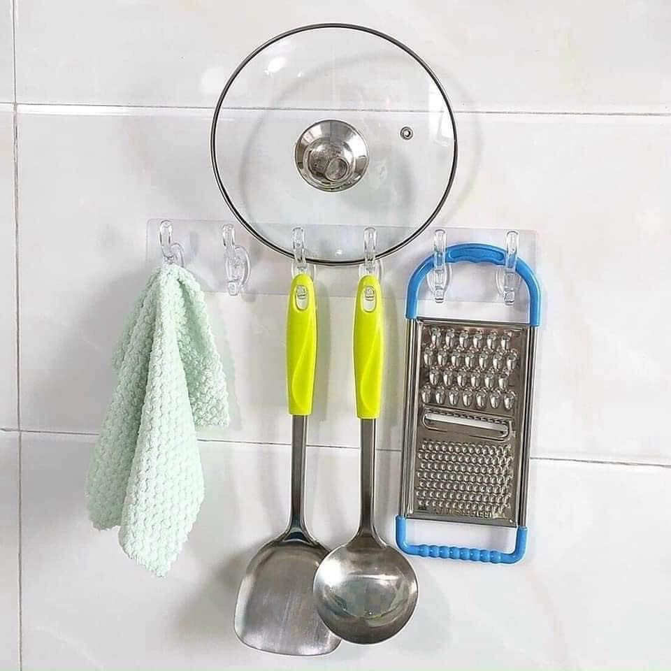 Nhà cửa & Đời sống > Sắp xếp nhà cửa > Móc treo || Móc dán tường treo đồ thanh 6 móc dài 33cm trong suốt siêu dính liền mạch dùng trong nhà tắm nhà bếpCòn hàng