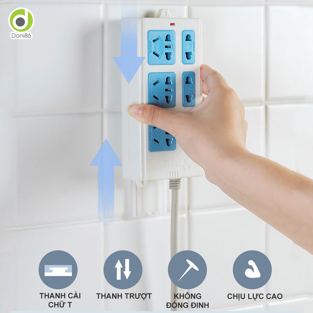 ✔ Móc dán tường treo ổ cắm điện, moderm wifi có thanh trượt và ốp dạng chữ T giúp giữ chặt thiết bị, không dễ rớt khi bị va chạm.