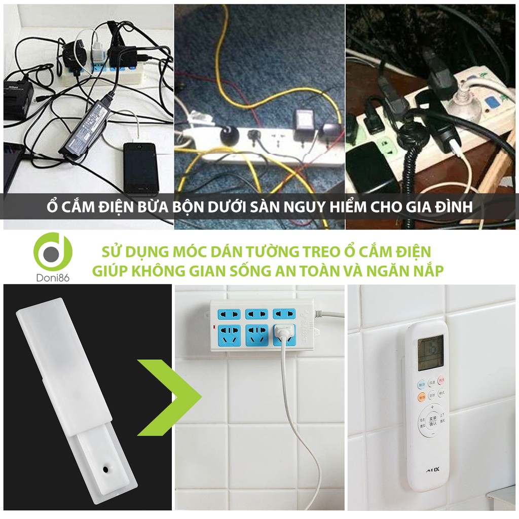 ✔ Móc dán tường treo ổ cắm điện, cục phát wifi giúp nhà cửa gọn gàng, dễ lau chùi sàn nhà.