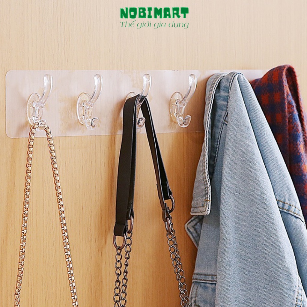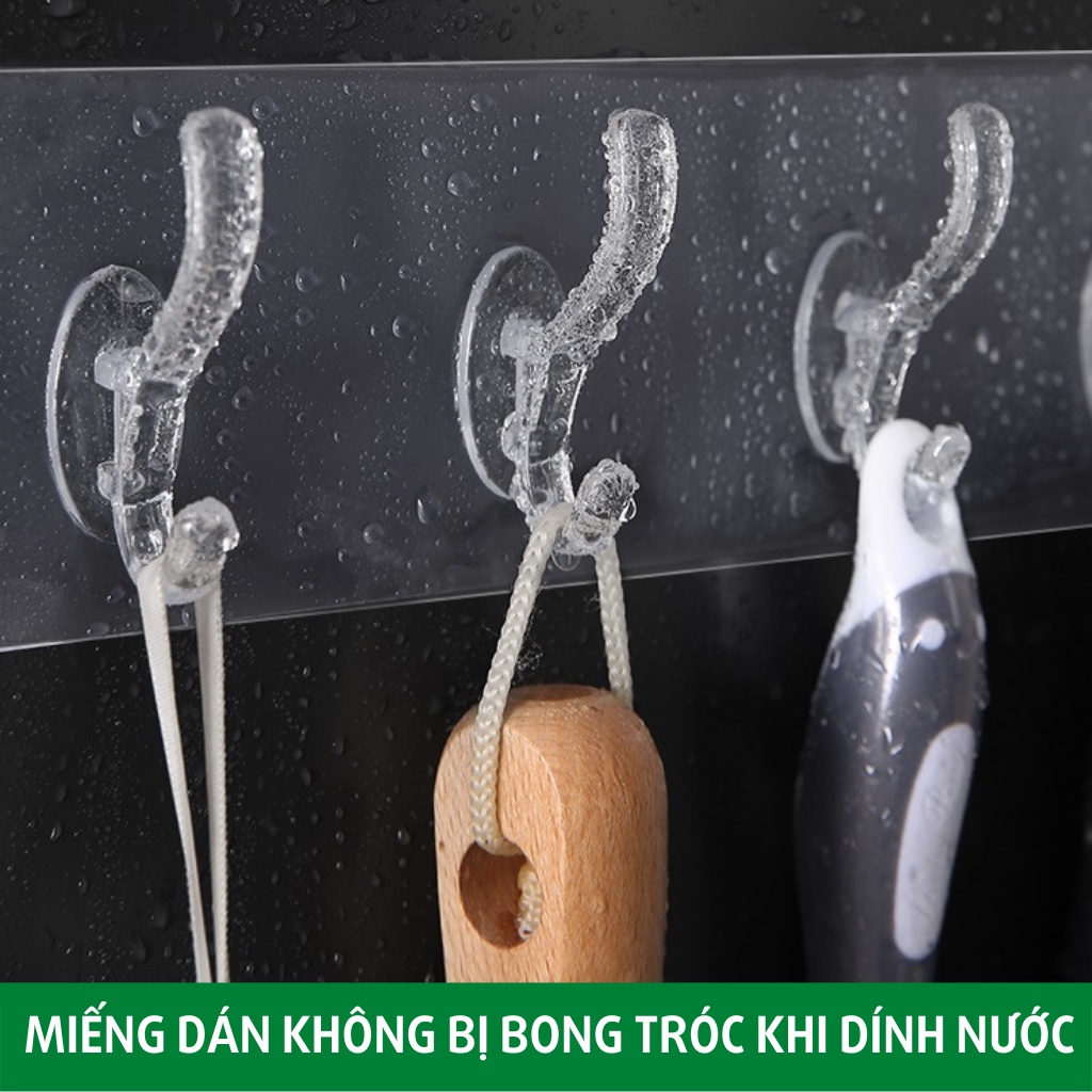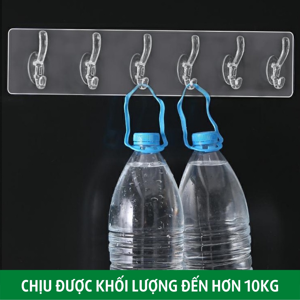 Móc dán tường treo quần áo siêu dính chịu lực trong suốt 6 chấu