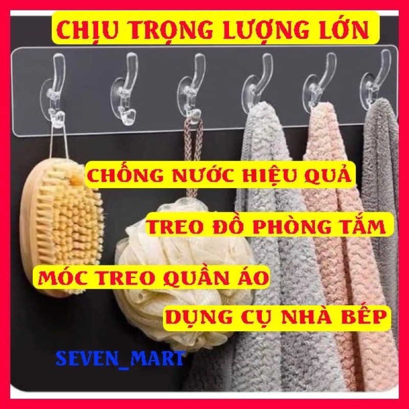 Móc dán tường trong suốt 6 móc treo dính siêu chắc.