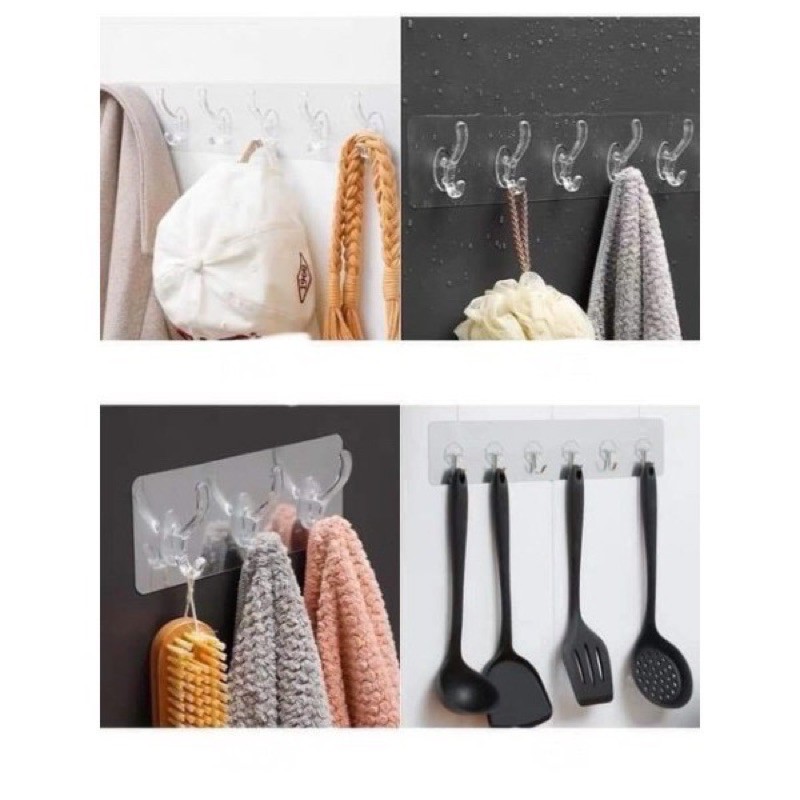 - Tên sản phẩm: Móc treo dán tường nhà tắm nhà bếp 6 móc cố định