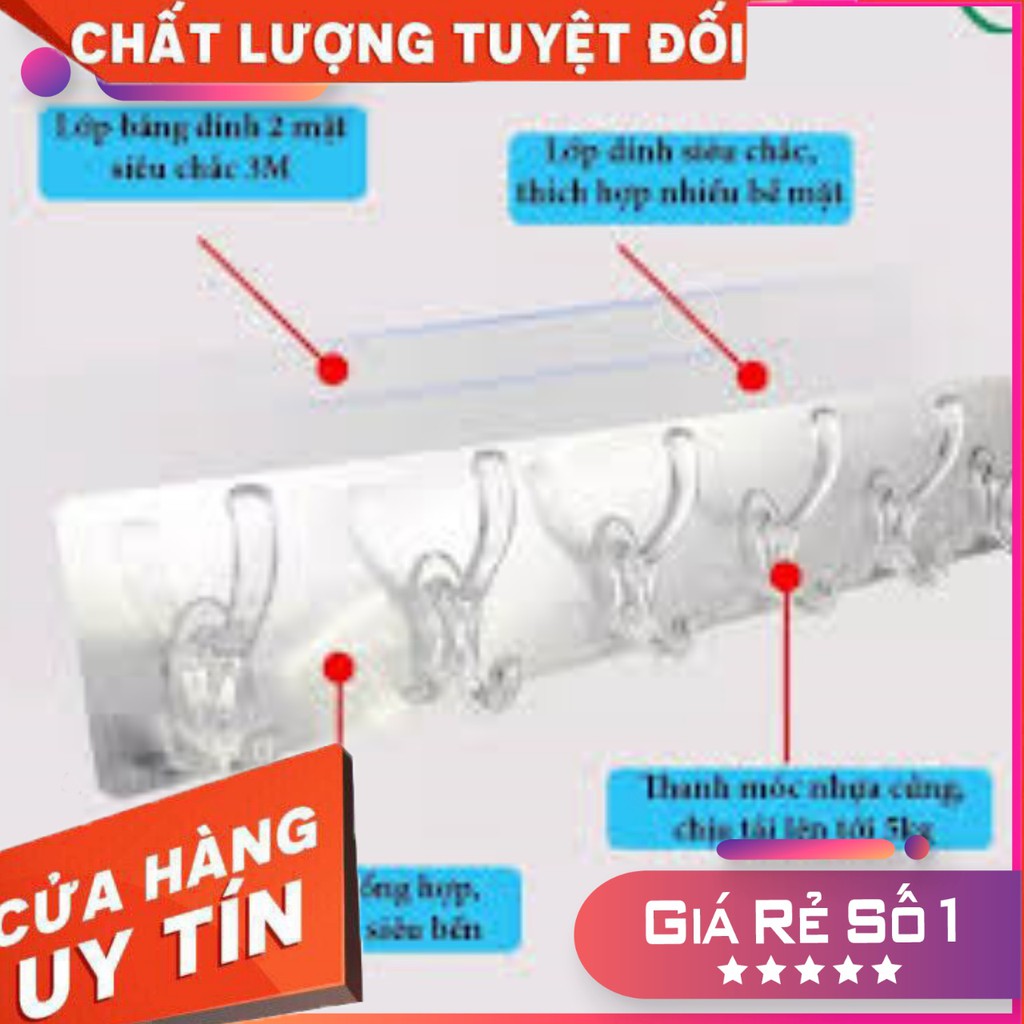 Thanh treo 6 móc dán tường sẵn sll, ko cần khoan, lại siêu dính ạMóc Dán Tường Trong Suốt 6 Nhánh Treo Mọi Vật Dụng - Siêu Chắc