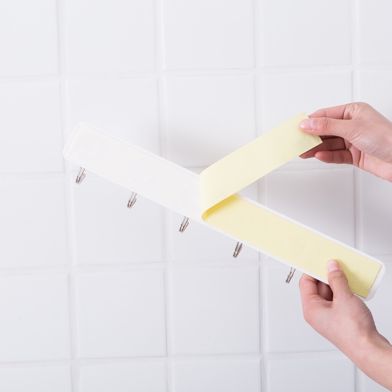 - Bạn có thể cố định Thanh Treo Dán Tường 6 Móc Liền Mạch Trong Suốt vào cánh cửa, tủ áo,… dễ dàng, không phải đóng đinh, khoan tường.