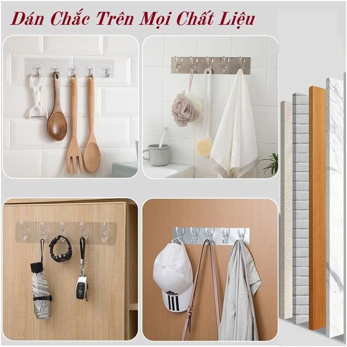 THANH MÓC DÍNH TƯỜNG ĐA NĂNG 6 MÓC DÙNG NHÀ TẮM, NHÀ BẾP