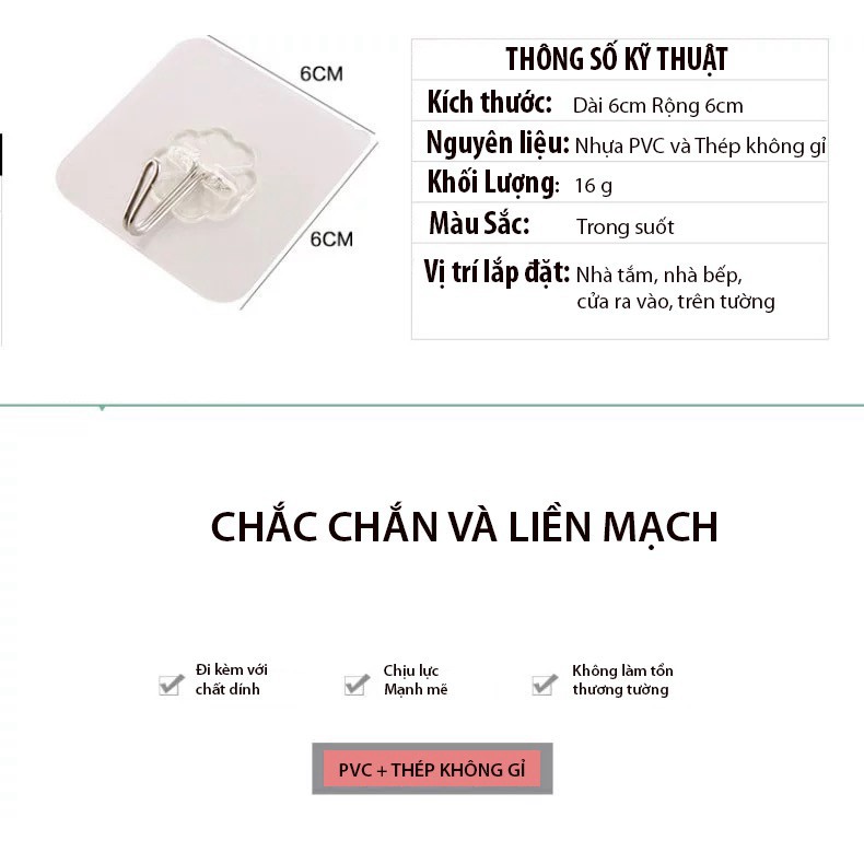 MÓC DÍNH TƯỜNG TREO ĐỒ TRONG SUỐT TIỆN LỢIMiếng dán dính tường móc treo đồ siêu dính siêu bền siêu rẻ KT 6x6cm