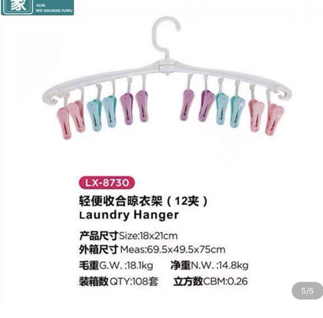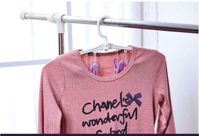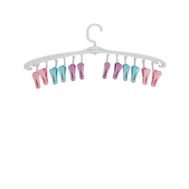 12 kẹp chia ra làm 2 thanh móc, xoay linh động, giúp khi phơi đồ được cách nhau nhanh khô, khi ko dùng nữa gập gọn tiết kiệm diện tích