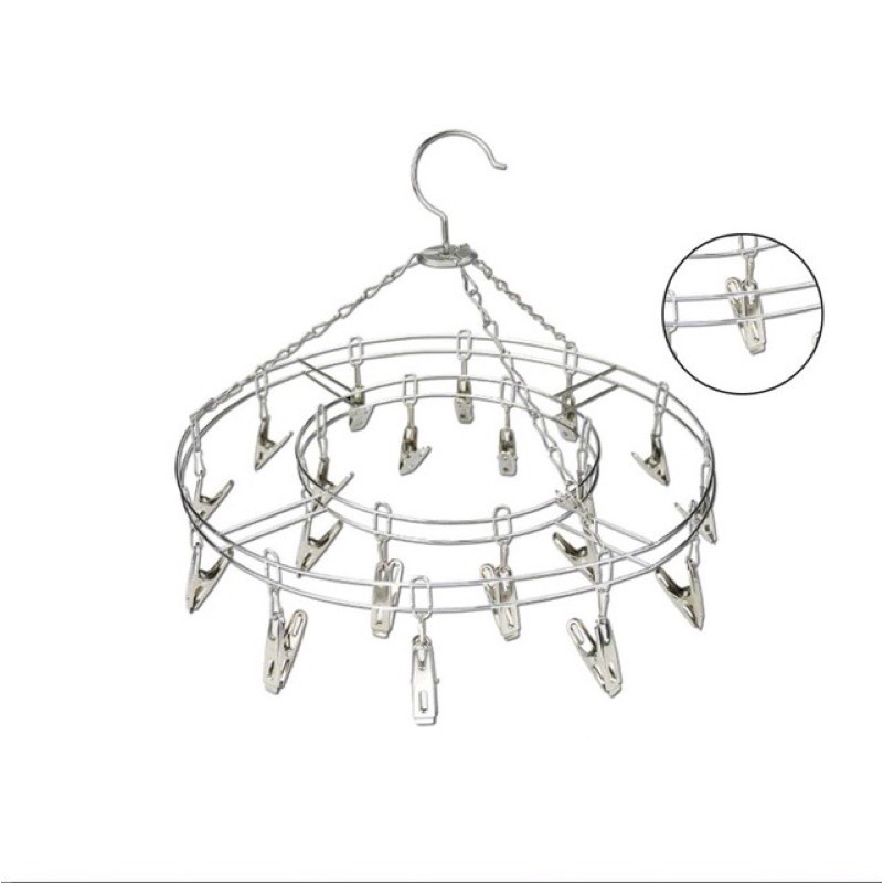 Móc treo quần áo tròn chất liệu inox, chắn chắn, tiết kiện diện tích. Mỗi móc tròn gồm 20 móc nhỏ, thuận tiện phơi khăn, tất,.... của bé.