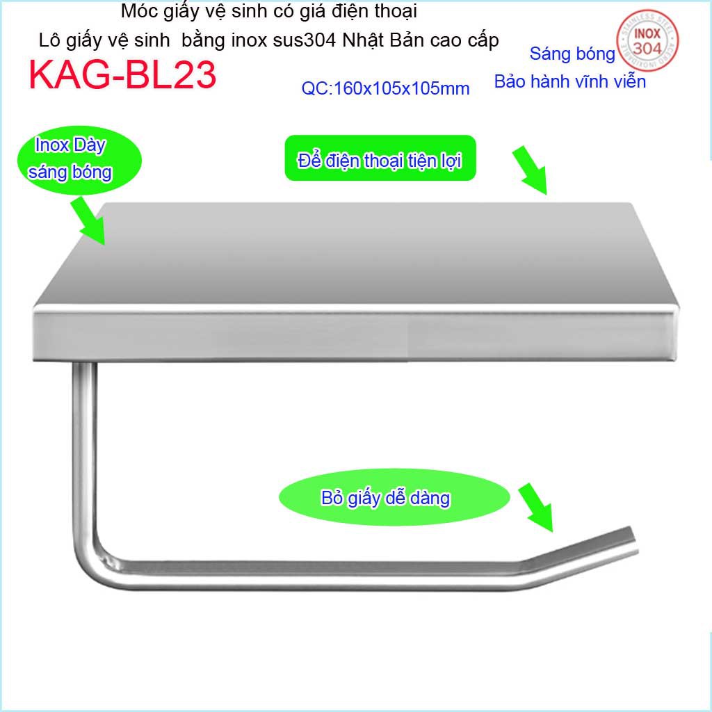 Móc giấy vệ sinh có giá đỡ điện thoại KAG-BL23, kệ để giấy SUS304 Nhật Bản dễ sử dụng thiết kế sang trọng tiện lợi