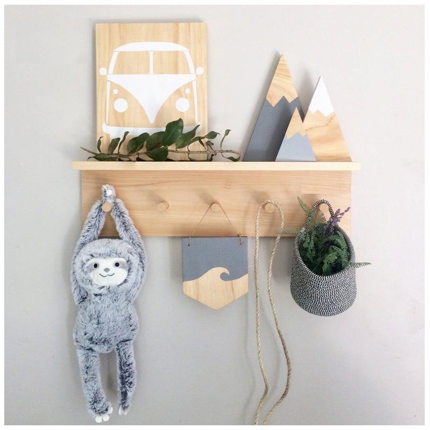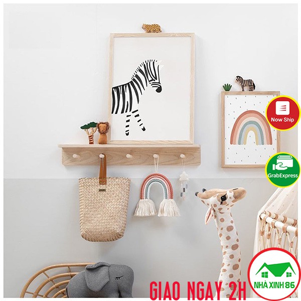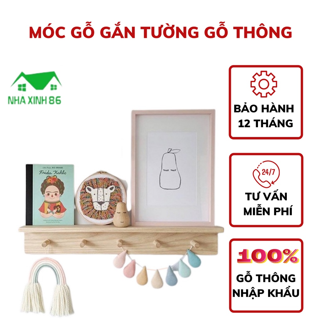 Móc gỗ gắn tường gỗ thông decor phòng siêu xinh, chịu lực cao l Kệ treo tường kèm móc trang trí nhà cửa gỗ thông