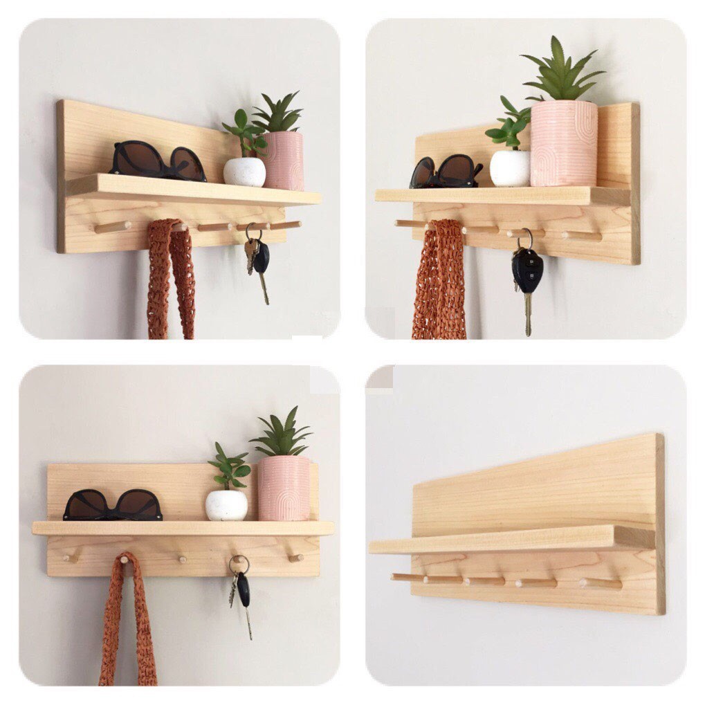 Giới thiệu Móc gỗ gắn tường gỗ thông decor phòng siêu xinh, chịu lực cao l Kệ treo tường kèm móc trang trí nhà cửa gỗ thông