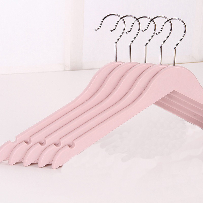 Móc gỗ thông cao cấp phủ bóng màu hồngThiết kế mới màu sắc trẻ trung năng động, thích hợp cho treo trong các cửa hàng quần áo tuổi teen.