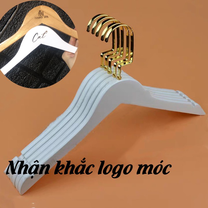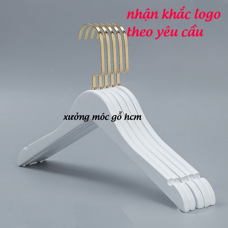 Nhà cửa & Đời sống > Sắp xếp nhà cửa > Mắc áo || Móc Gỗ Trắng Treo Quần Áo Luxury 44,5cm Đầu Móc Vàng (10 móc)Còn hàng